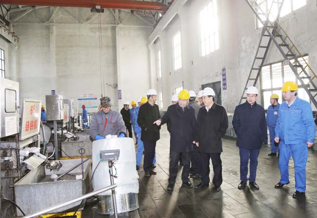 2月13日,新安縣縣長郅書安、副縣長薛萬超、王加祥、楊惠江帶領相關委局負責人到金屬鈉公司檢查安全工作。集團公司董事長李躍民、總經(jīng)理郭峰、副總經(jīng)理韓鐵京等陪同。