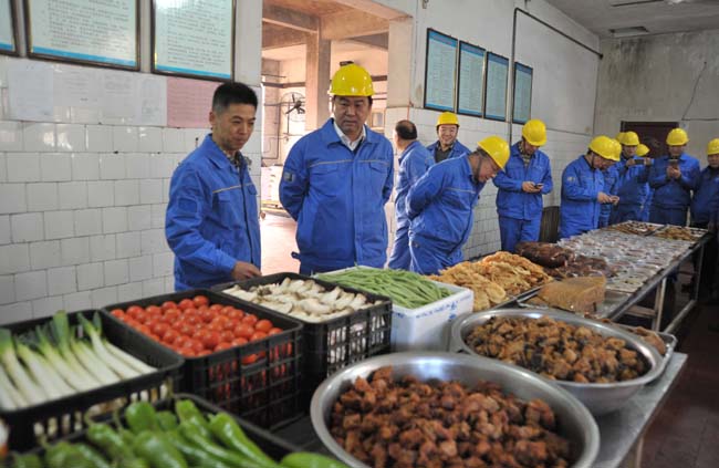 郭峰總經(jīng)理等領(lǐng)導(dǎo)到大板錠車間慰問一線員工。