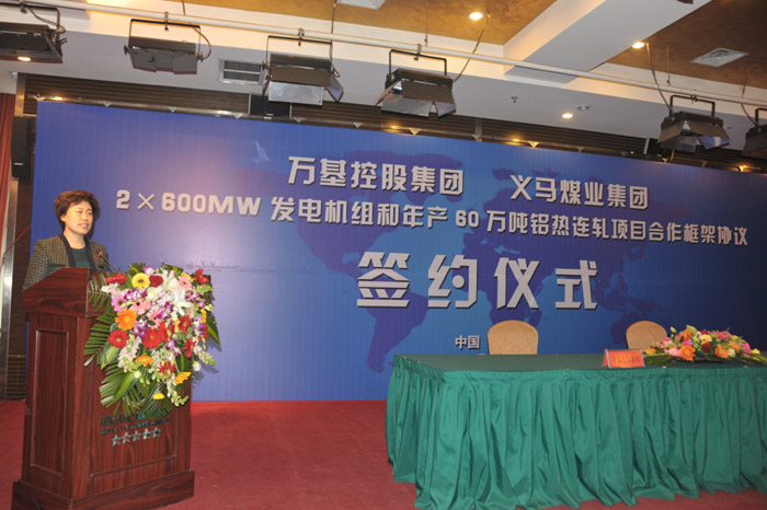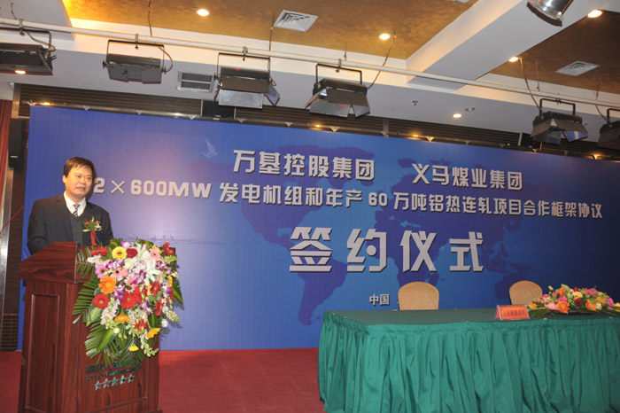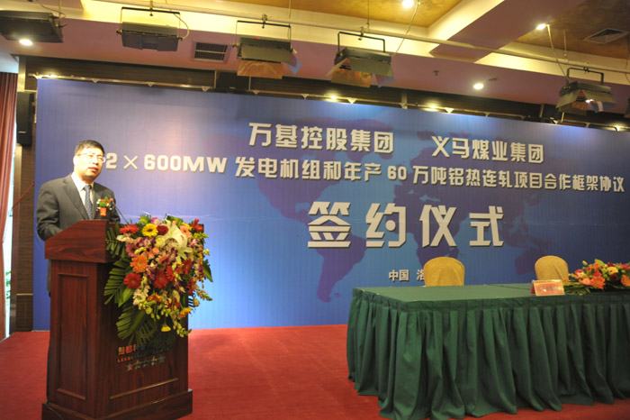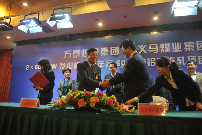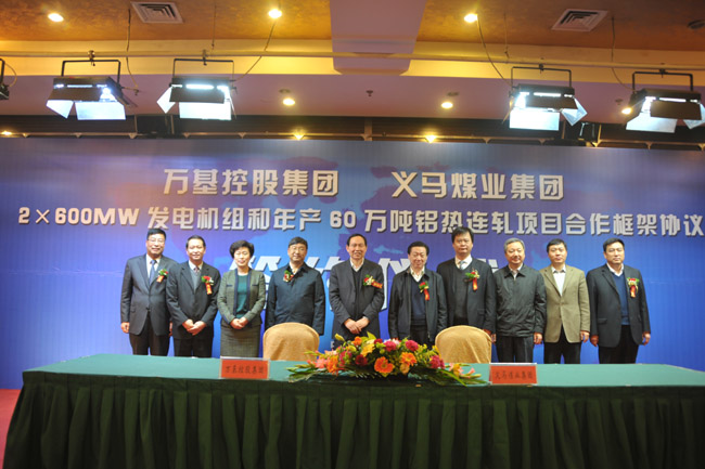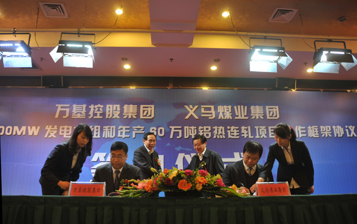 1月15日,義馬煤業(yè)集團(tuán)股份有限公司與萬基控股集團(tuán)有限公司在洛陽舉行2×600MW發(fā)電機(jī)組和年產(chǎn)60萬噸鋁熱軋項目合作框架協(xié)議簽約儀式。省委常委、洛陽市委書記陳雪楓及市領(lǐng)導(dǎo)尚朝陽、陳向平、高義,新安縣領(lǐng)導(dǎo)王玉峰、郅書安、秦智琛、郭軒子、樊棟梁、康燕、邵樂毅和河南能源化工集團(tuán)董事長陳祥恩、義煤集團(tuán)董事長馬正蘭、萬基控股集團(tuán)董事長李躍民、總經(jīng)理郭峰及市縣政府有關(guān)部門等近百人參加了簽約儀式。