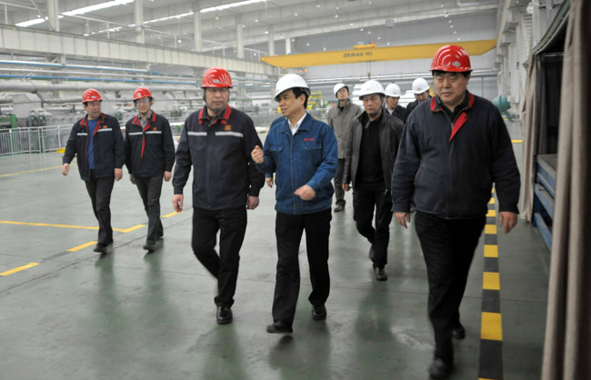 中信重工董事長(zhǎng)任沁新一行考察萬(wàn)基鋁加工生產(chǎn)線(之一)