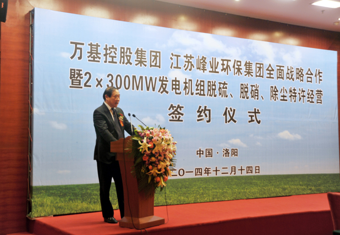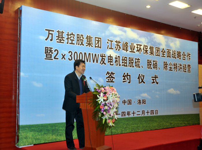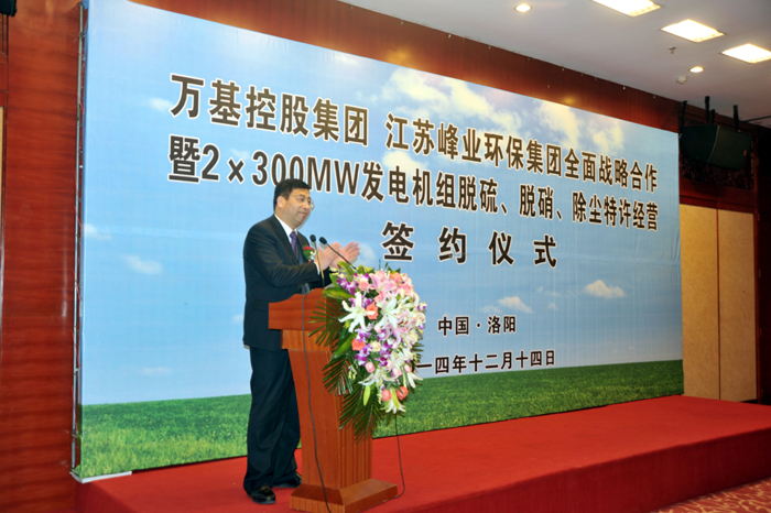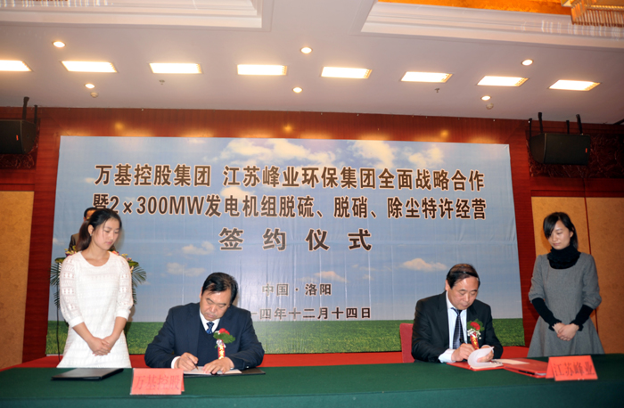 12月14日上午,萬(wàn)基控股集團(tuán)與江蘇峰業(yè)科技環(huán)保集團(tuán)舉行全面戰(zhàn)略合作暨2X30萬(wàn)千瓦機(jī)組脫硫、脫硝、除塵工程特許經(jīng)營(yíng)簽約儀式,雙方將在發(fā)電機(jī)組的脫硫、脫硝、除塵等領(lǐng)域進(jìn)行合作。江蘇峰業(yè)科技環(huán)保集團(tuán)邀請(qǐng)出席的領(lǐng)導(dǎo)有中國(guó)環(huán)保產(chǎn)業(yè)協(xié)會(huì)副會(huì)長(zhǎng)徐鳳剛、揚(yáng)州市政府秘書(shū)長(zhǎng)王逍宵、揚(yáng)州市經(jīng)信委主任尤在晶、揚(yáng)州市江都區(qū)常委副區(qū)長(zhǎng)增萬(wàn)忠、揚(yáng)州市江都區(qū)發(fā)改委主任黃春濤、江都區(qū)高端裝備制造產(chǎn)業(yè)園管委會(huì)主任楊曉榮。洛陽(yáng)市副市長(zhǎng)王敬林、洛陽(yáng)市發(fā)改委副主任王建中、新安縣委書(shū)記王玉峰、縣長(zhǎng)郅書(shū)安、副縣長(zhǎng)邵樂(lè)毅、縣產(chǎn)業(yè)集聚區(qū)主任樊棟梁、縣發(fā)改委主任李森和公司董事長(zhǎng)李躍民、總經(jīng)理郭峰出席簽約儀式。