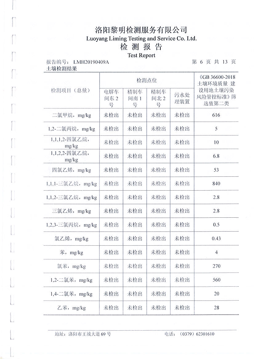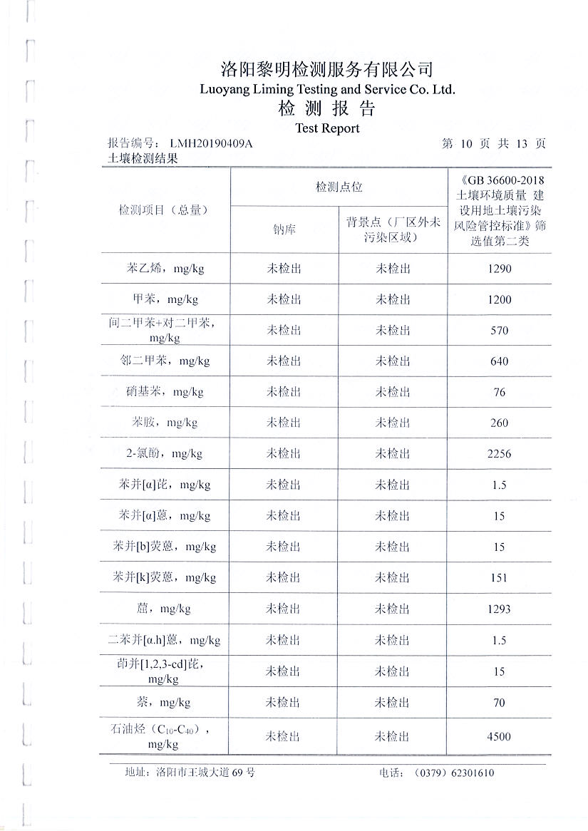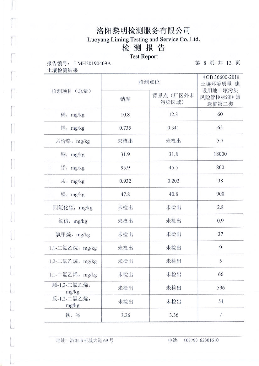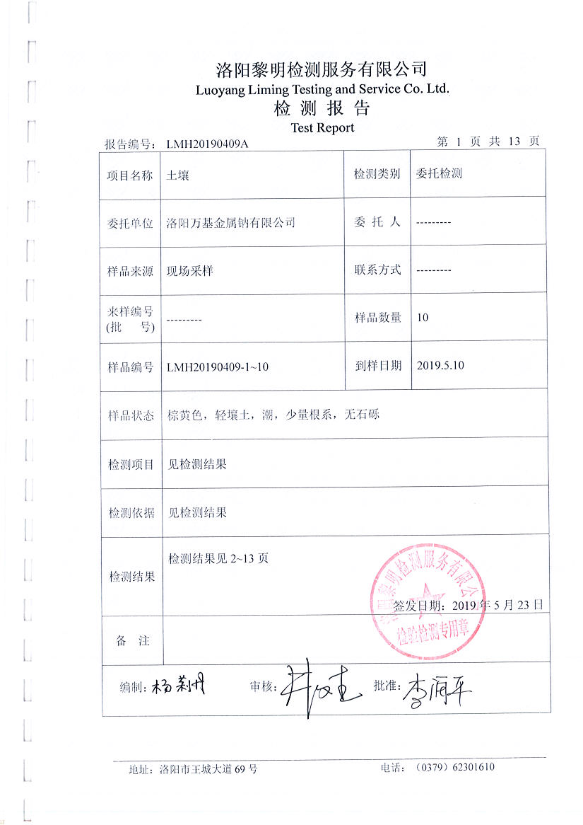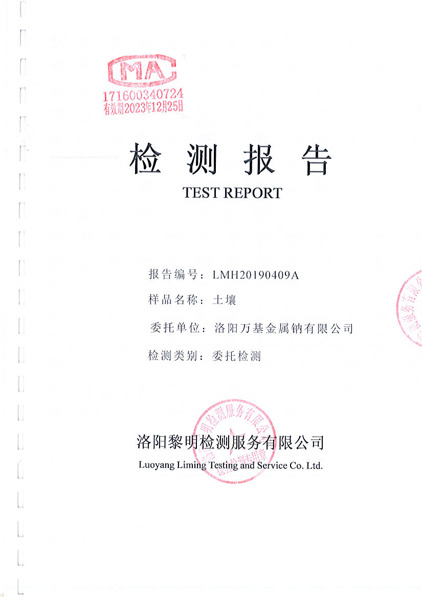 洛陽萬基金屬鈉公司土壤檢測報(bào)告公示