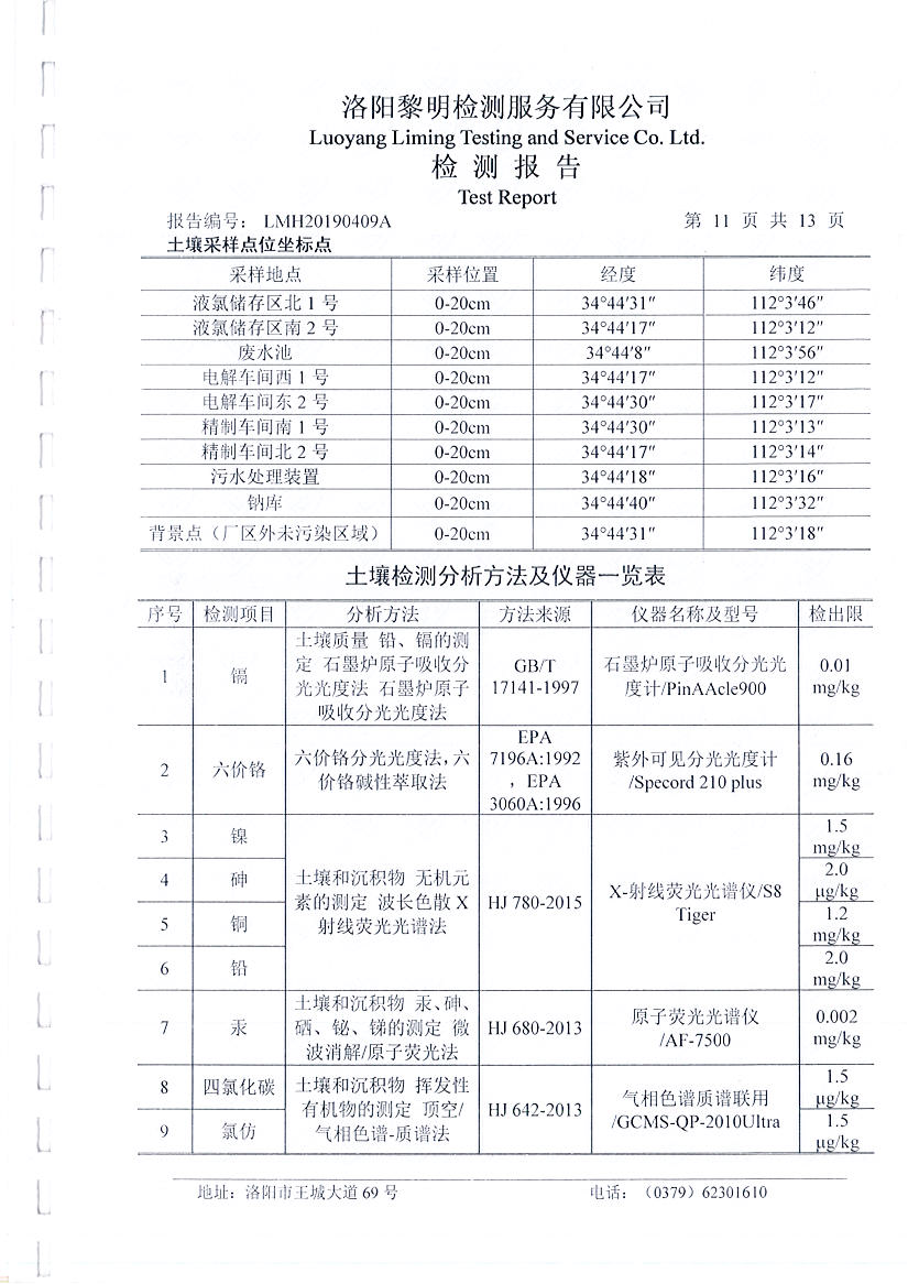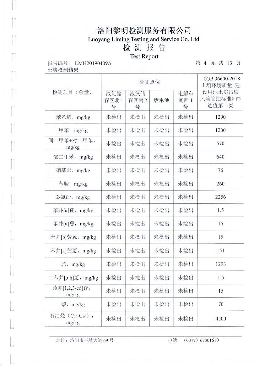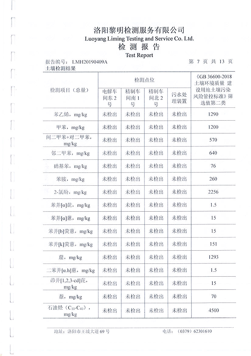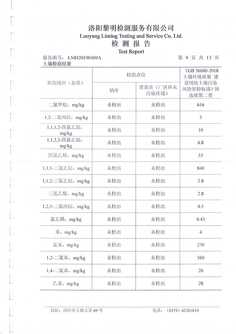 洛陽萬基金屬鈉公司土壤檢測報(bào)告公示