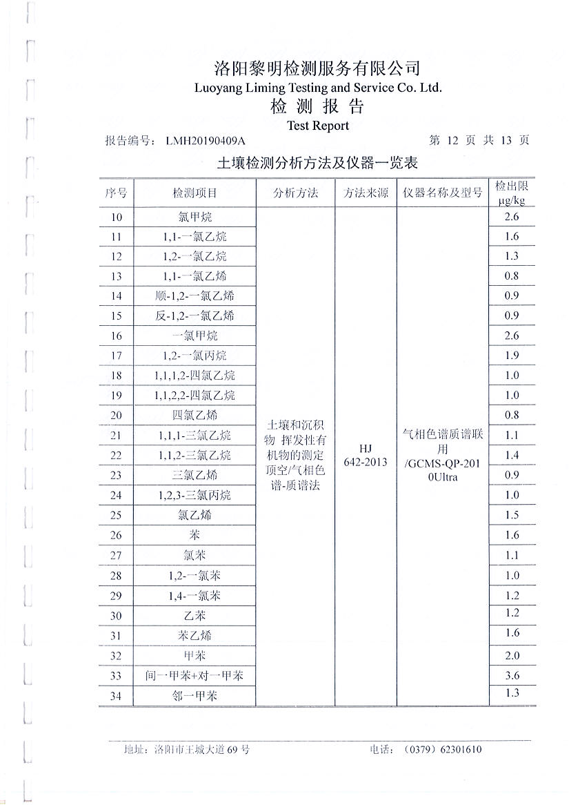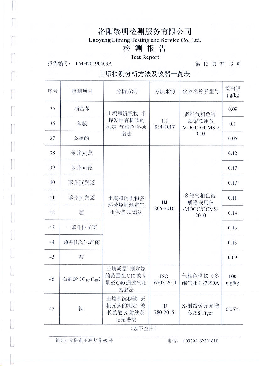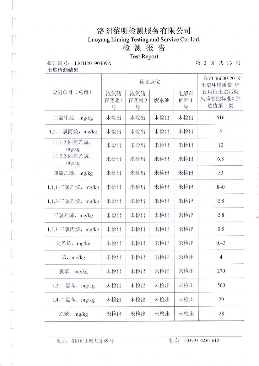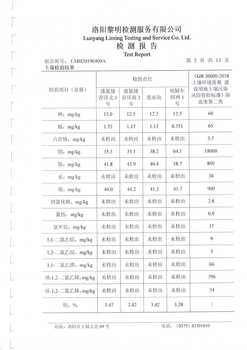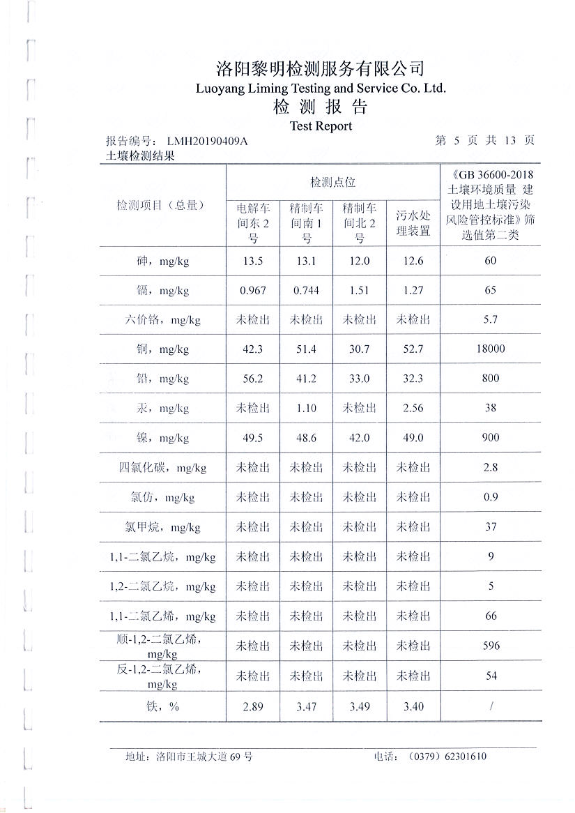 洛陽萬基金屬鈉公司土壤檢測報(bào)告公示