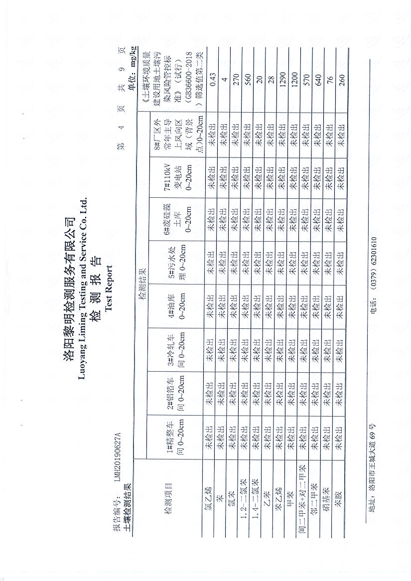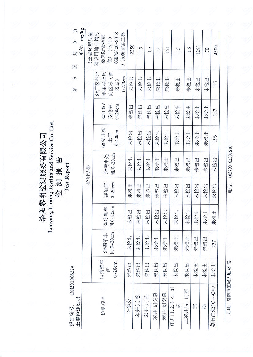 洛陽萬基金屬鈉公司土壤檢測報告公示