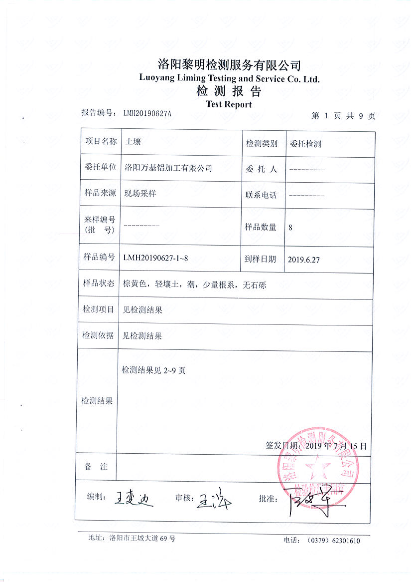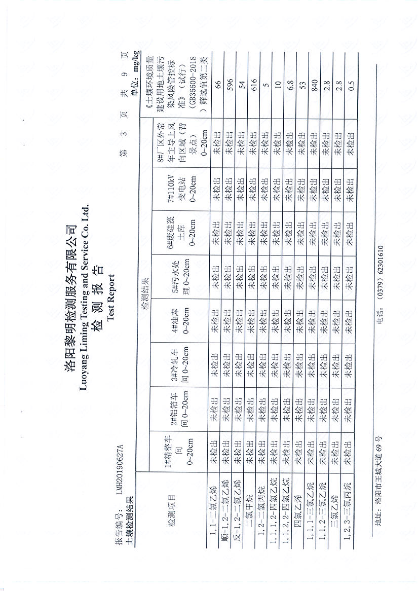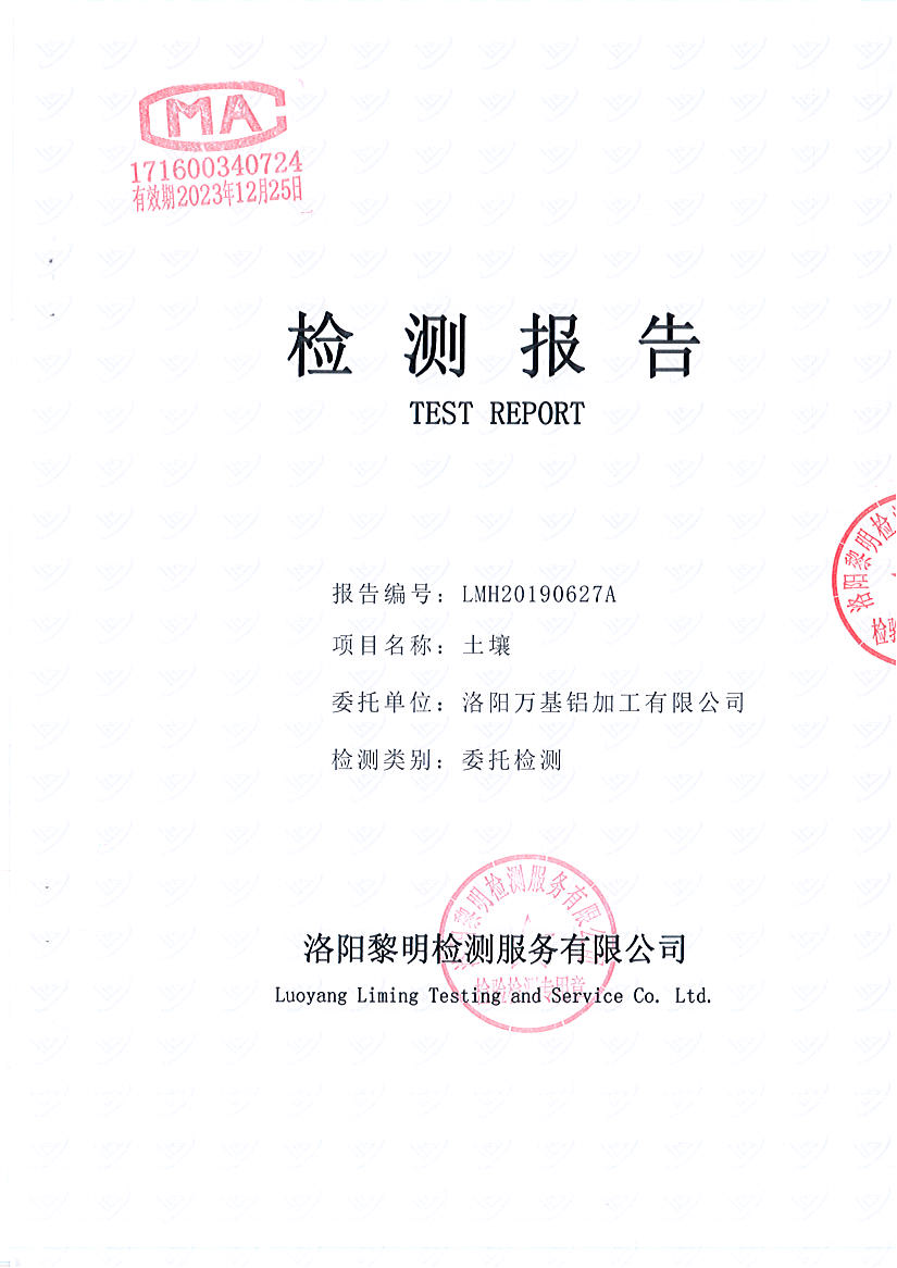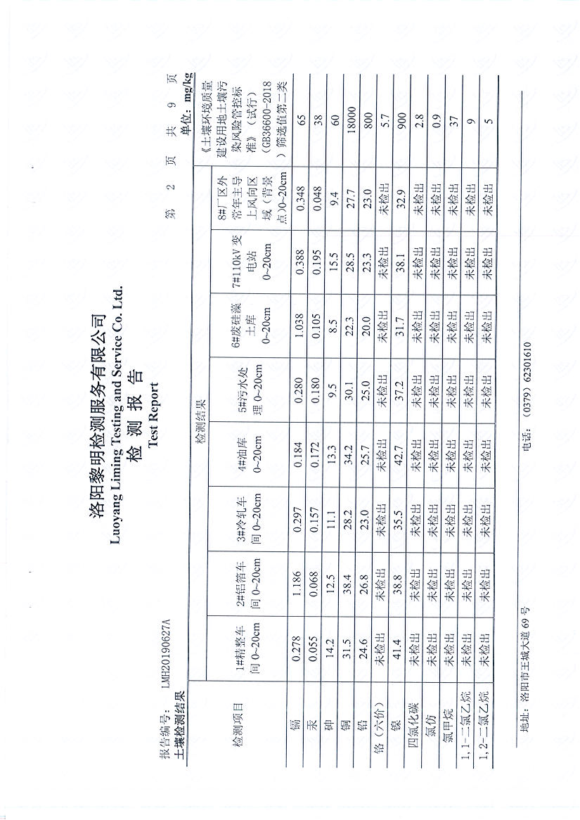 洛陽萬基鋁加工有限公司2019年土壤檢測報告