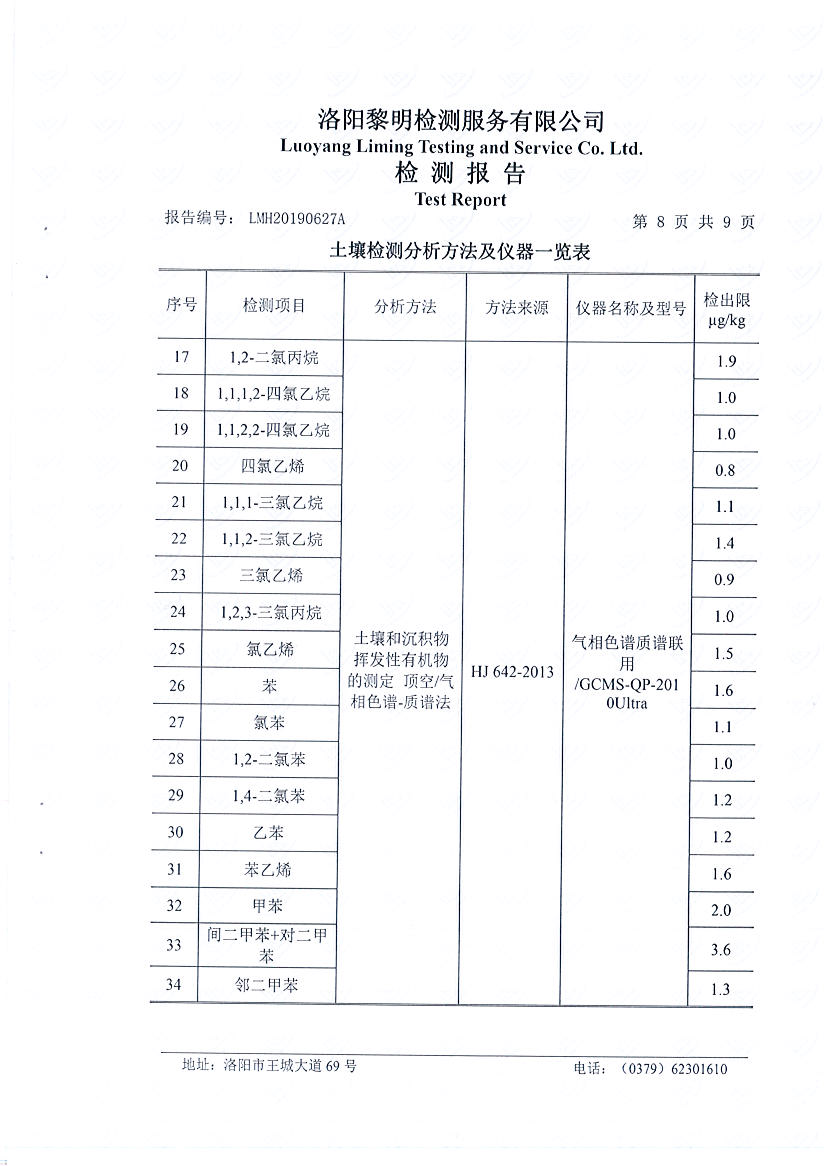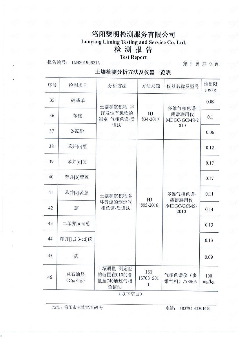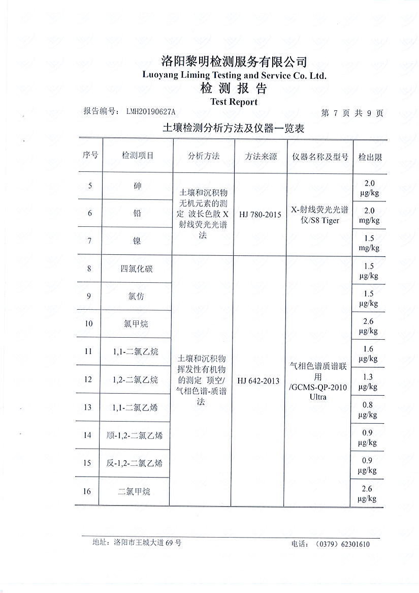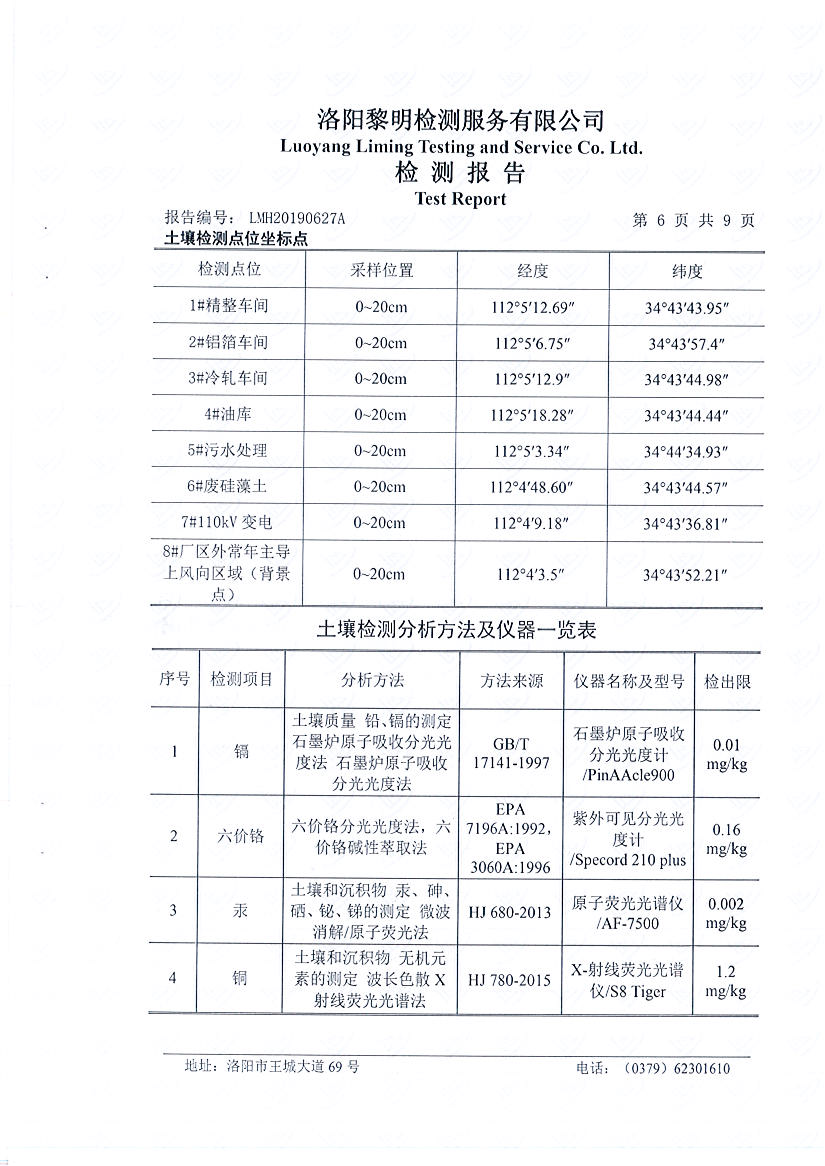 洛陽萬基鋁加工有限公司2019年土壤檢測報告