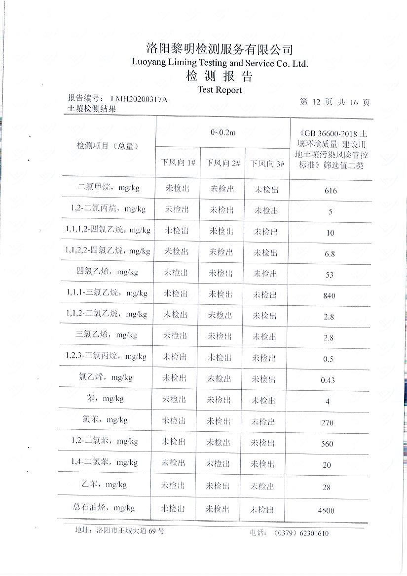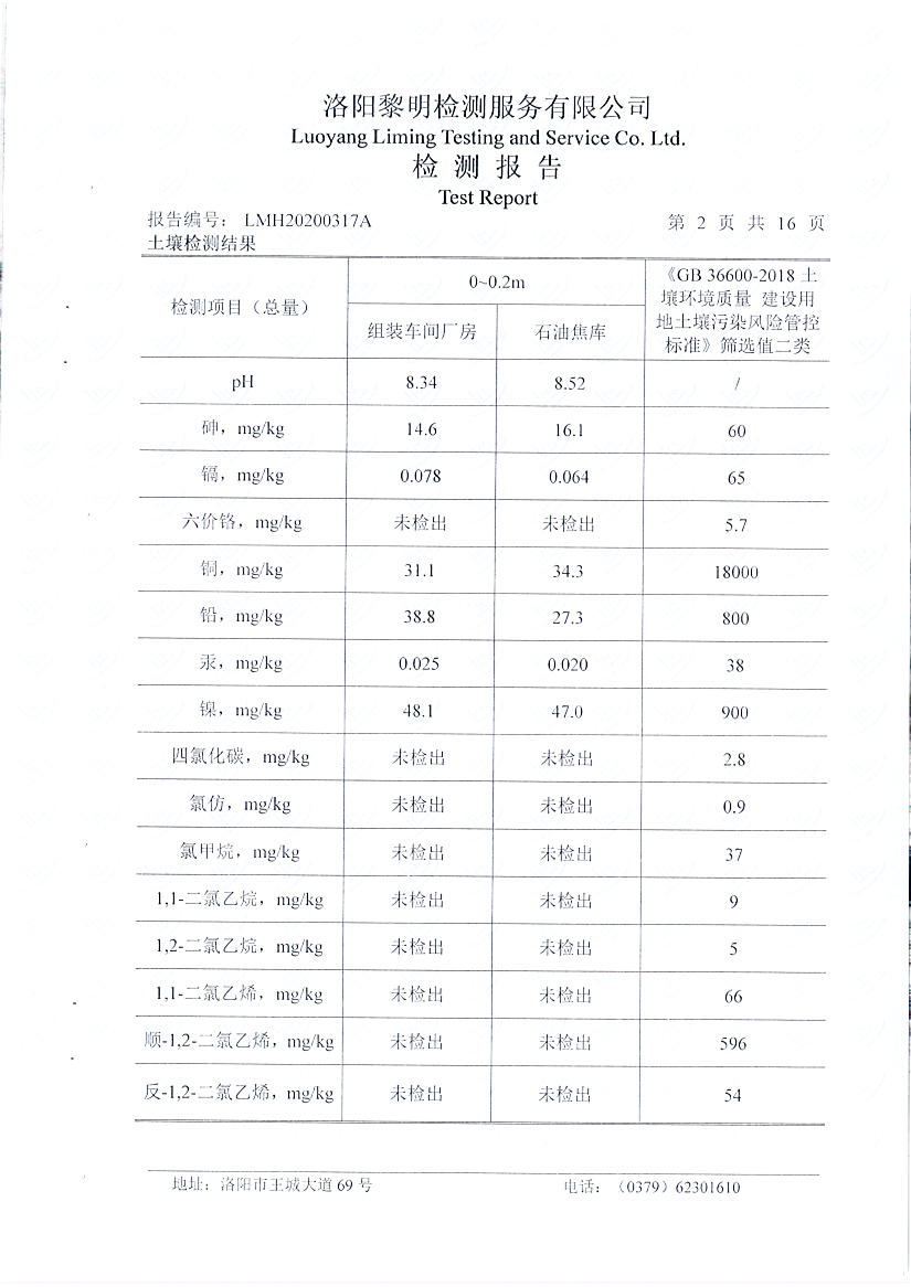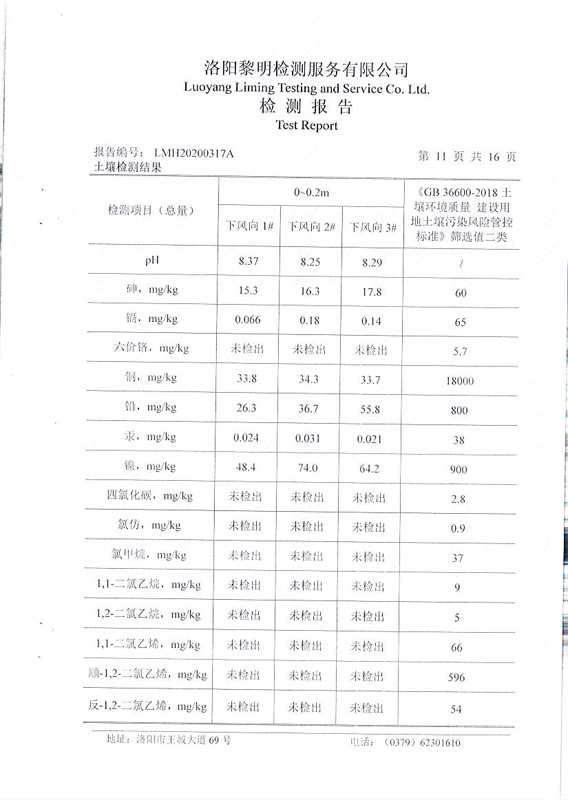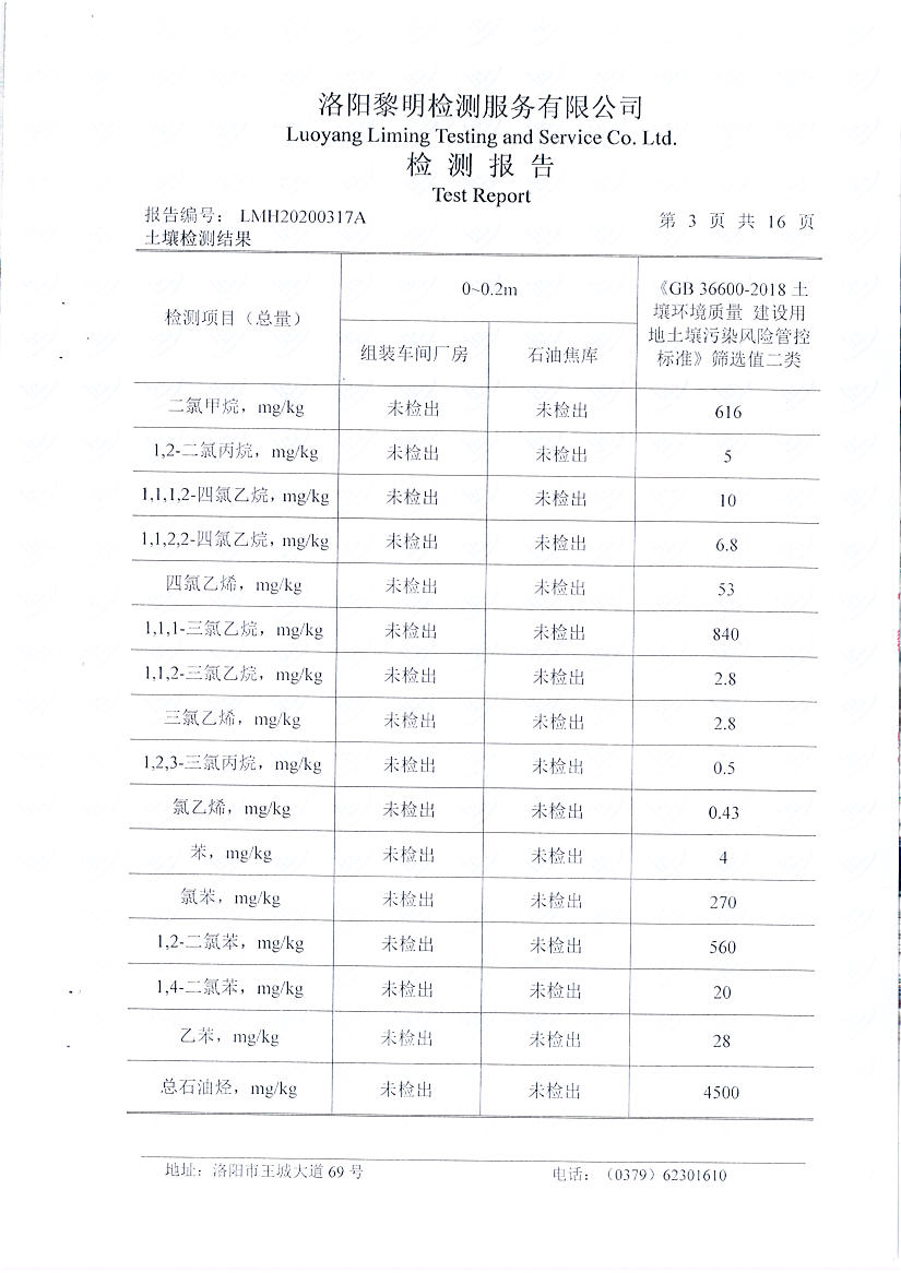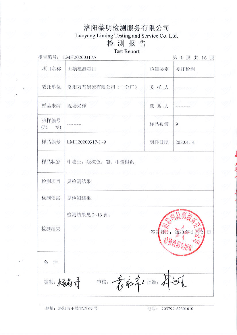 洛陽萬基炭素有限公司(一分廠)2020土壤自行檢測報告