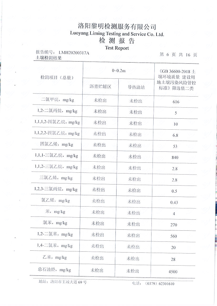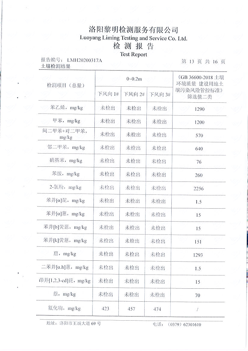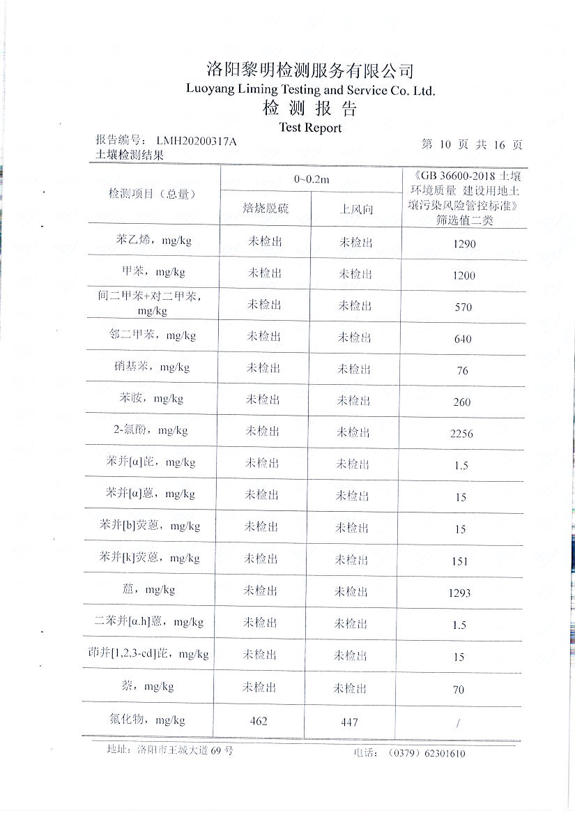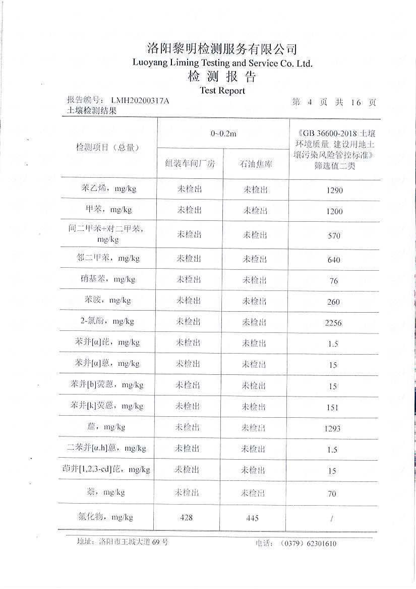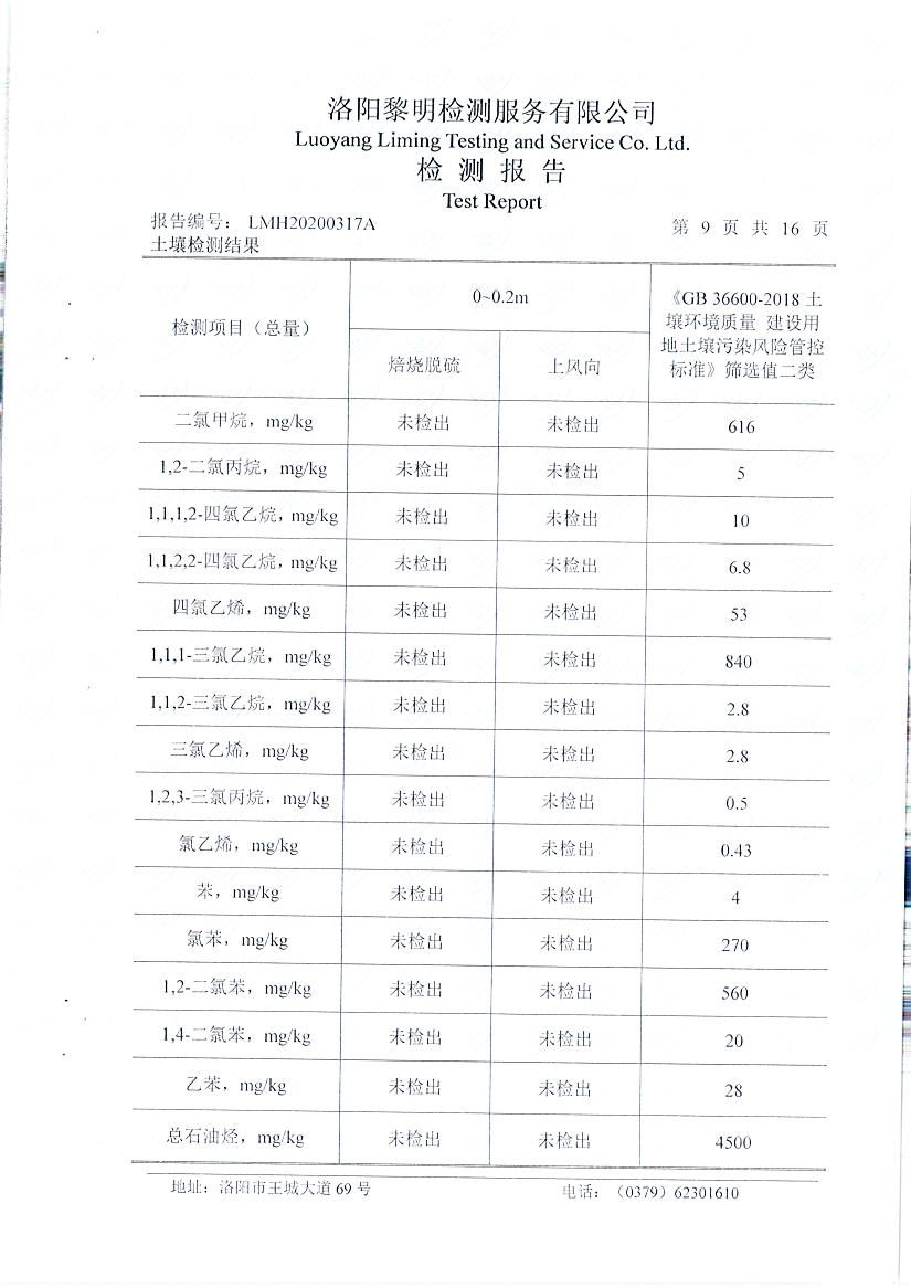 洛陽萬基炭素有限公司(一分廠)2020土壤自行檢測報告