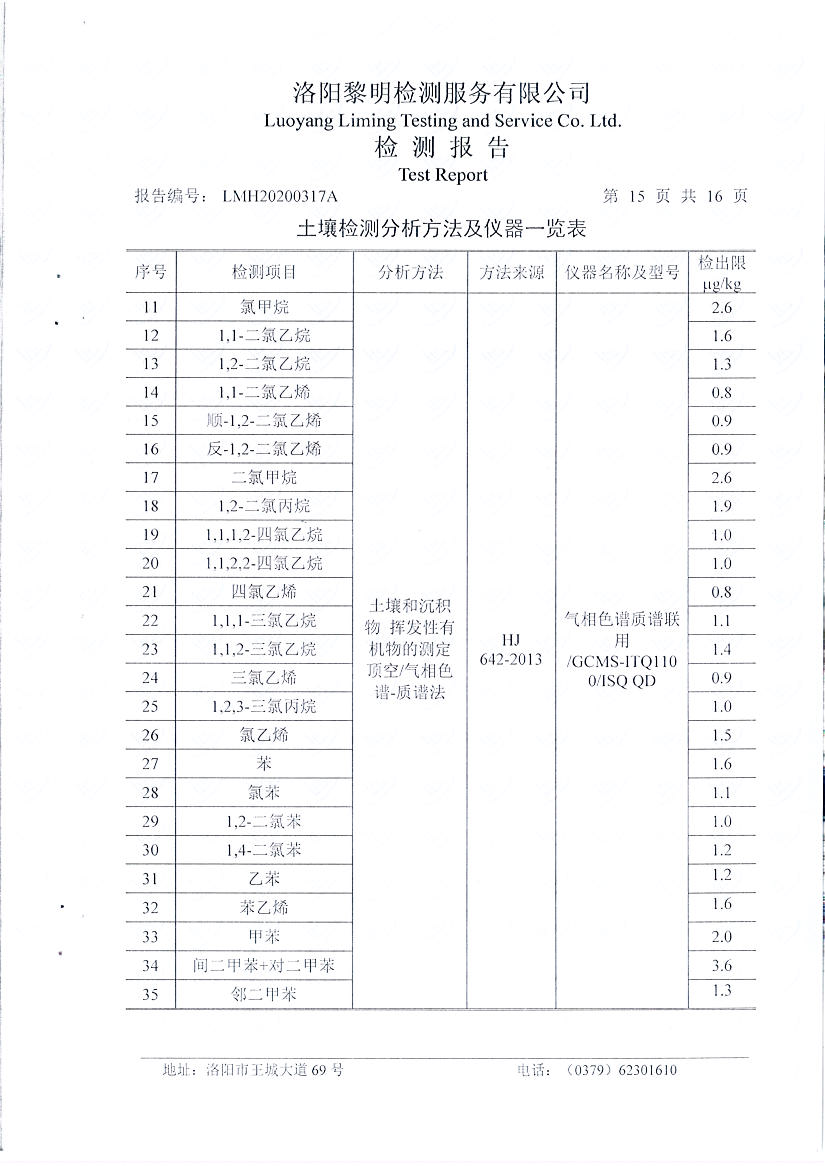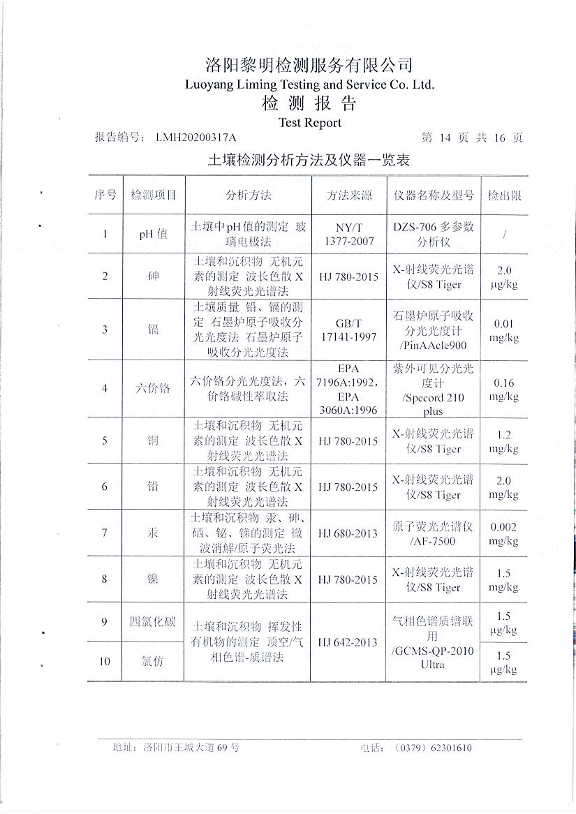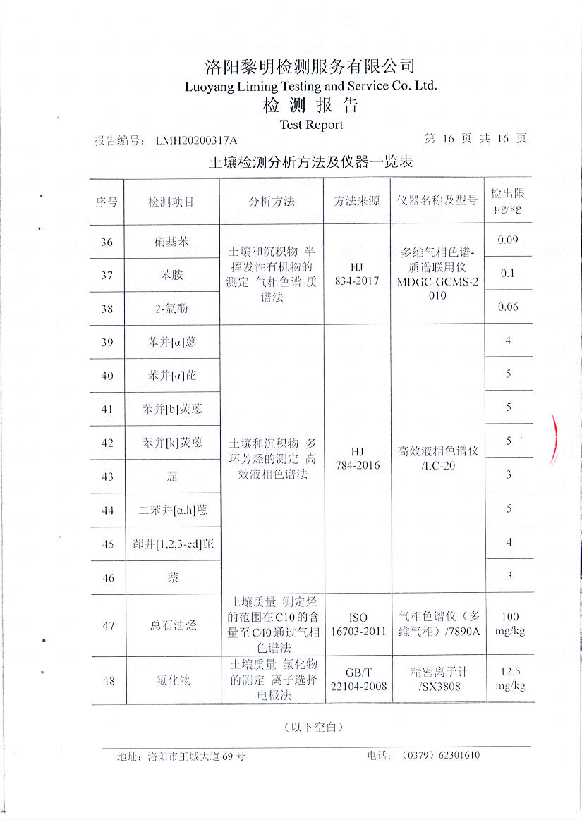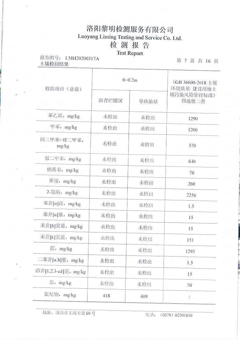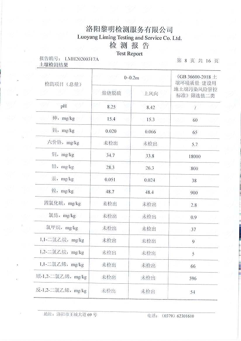 洛陽萬基炭素有限公司(一分廠)2020土壤自行檢測報告