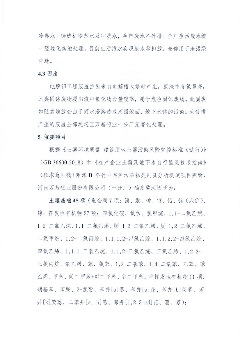 河南萬基鋁業(yè)股份有限公司(一分廠)2020土壤自行監(jiān)測方案
